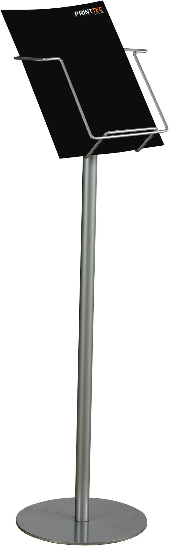 Brochure stand with strong foot. Produced from wire. Polyester lacquered in silver.