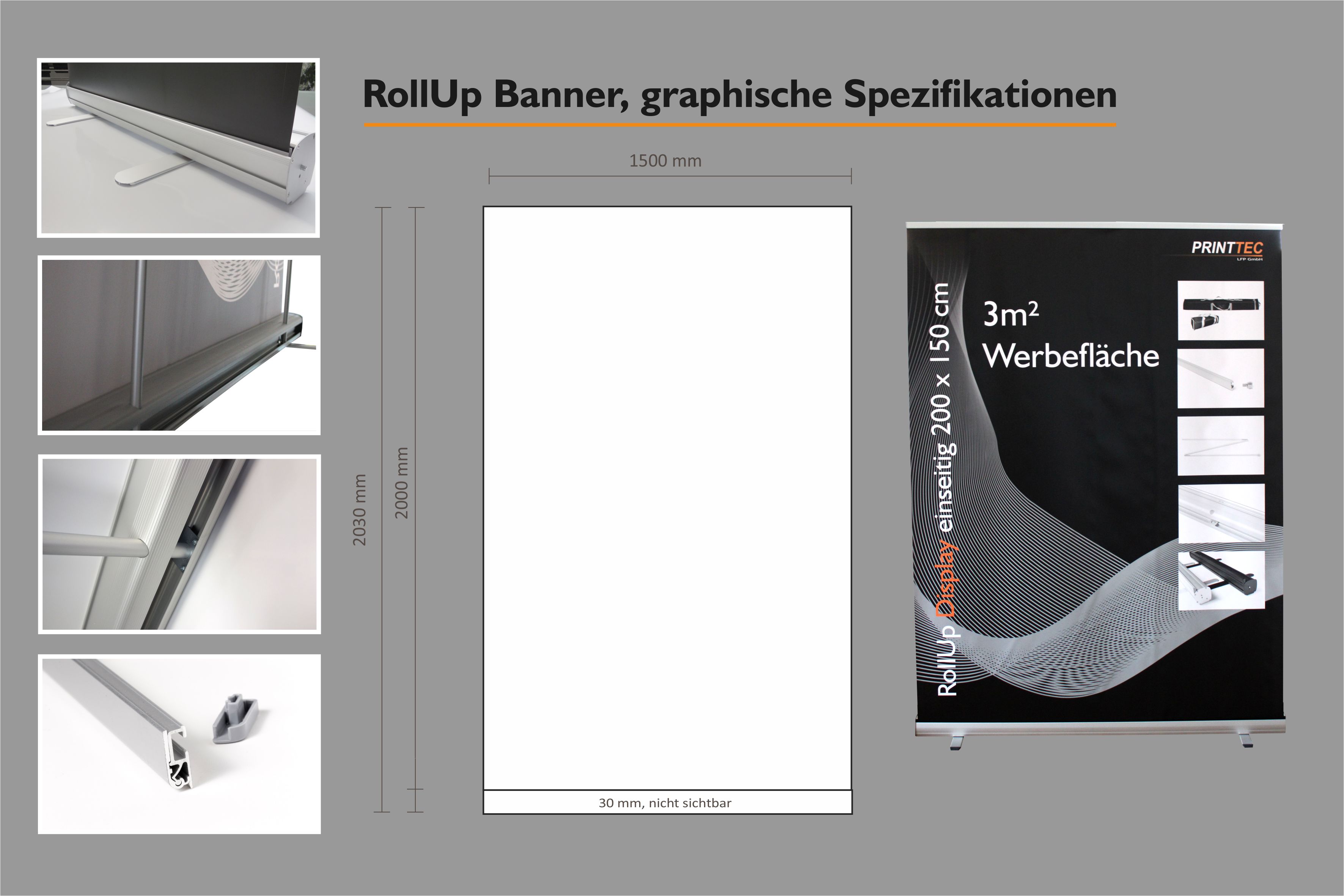 RollUps 1x 150,0 cm Breite, komplett mit Druck und Tasche
