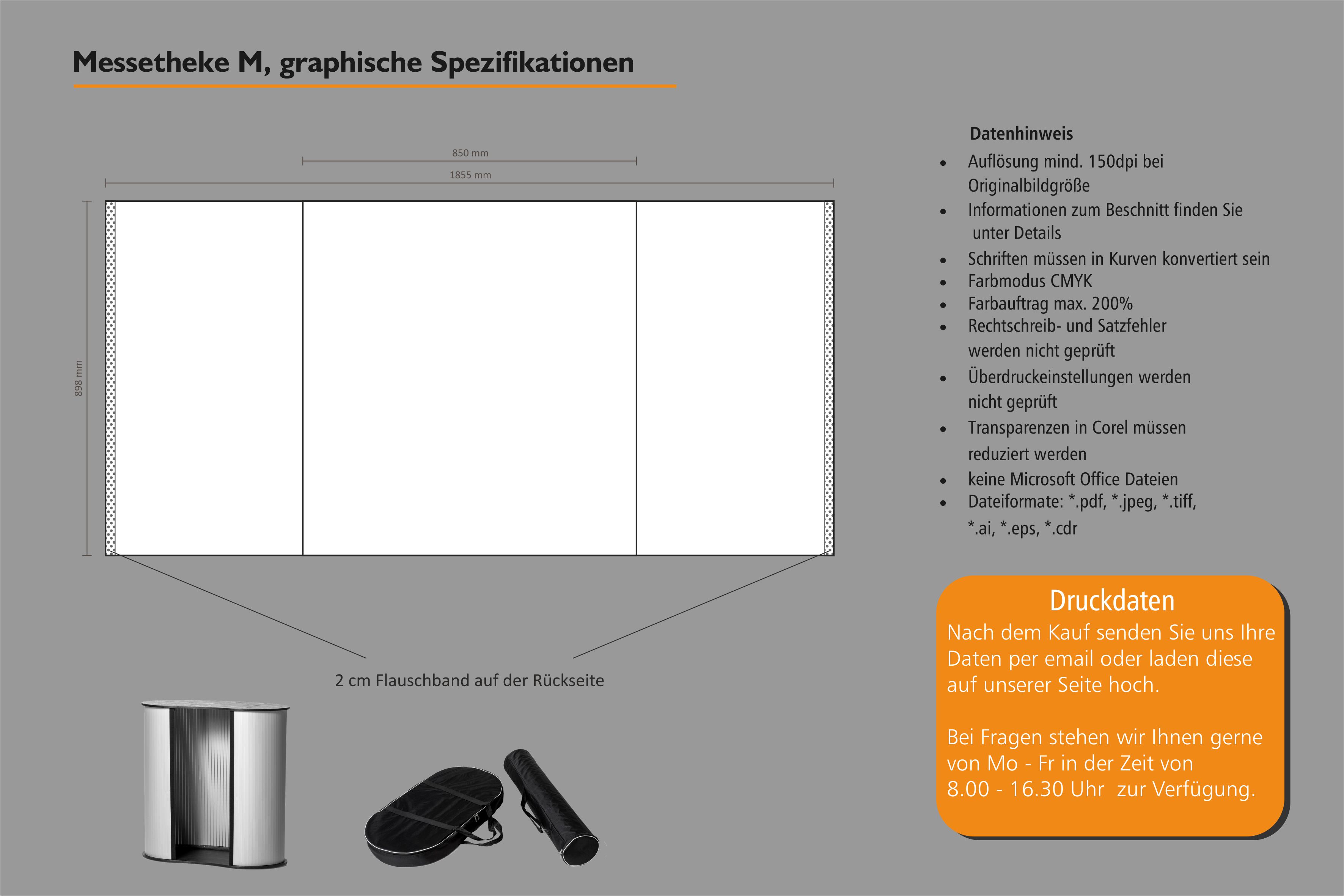 Bestehend aus einem RollUp 150,0 cm Breite und einer Theke